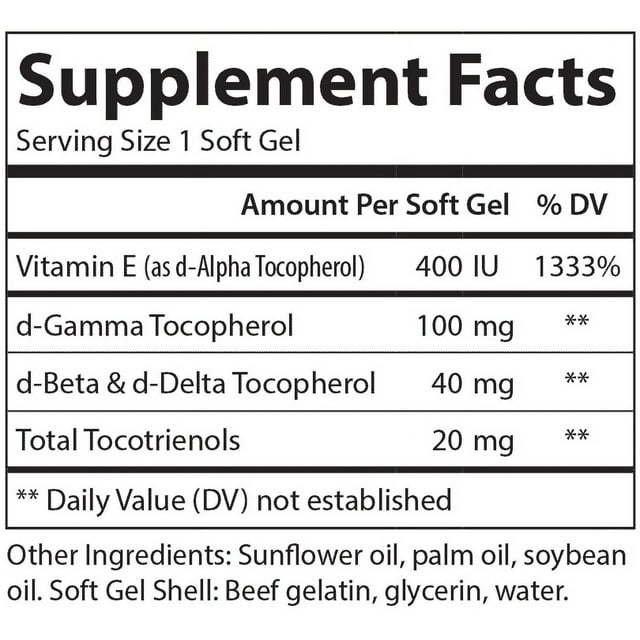 Carlson E-Gems Elite 400 IU is an exclusive blend of the entire vitamin E family, including eight forms of All-Natural Tocopherols and Tocotrienols. Research shows that All-Natural Vitamin E forms offer many health benefits and play an important role in cardiovascular health and protecting the body from free radical damage. Natural source vitamin E is twice as active in our body as synthetic vitamin E.