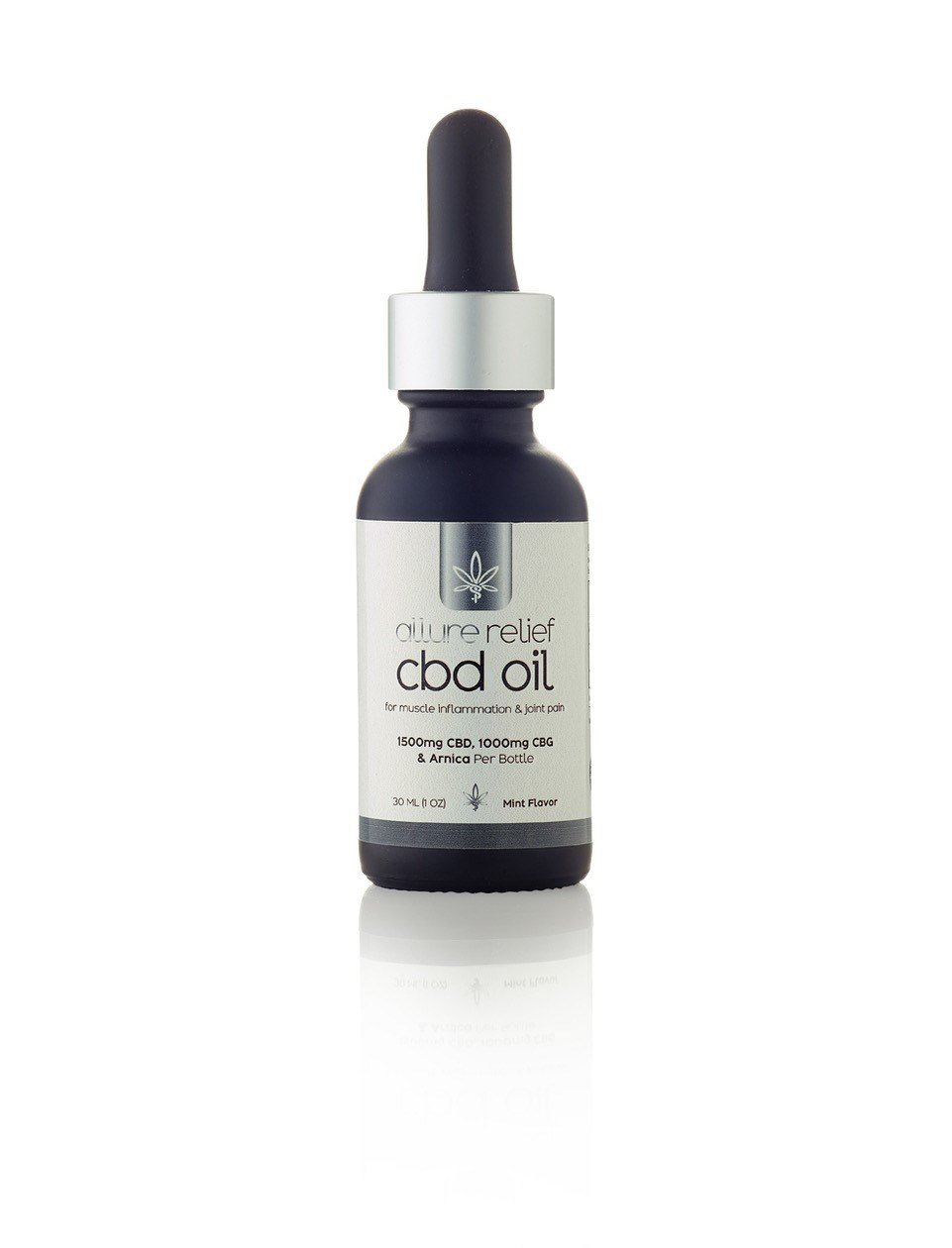 1.Allure Relief CBD Oil Tincture 30 mL high potency 1500 mg of CBD and 1000 mg of CBG Let the non-addictive benefits of CBD help life's daily challenges