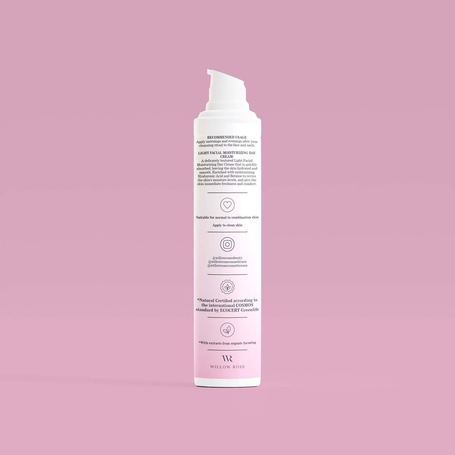 Willow Rose formulas have been developed from 2021 to 2022. Our products are unique; using the most recent research on anti-aging actives (hyaluronic acid; salycilic acid; betaine; caffeine; CBD; Niacinamide; organic plant; and floral extracts). which allows you to reduce skin sensitivity; bring back elasticity on your skin and support your skin changes with age. We are focusing on the longevity of your body.