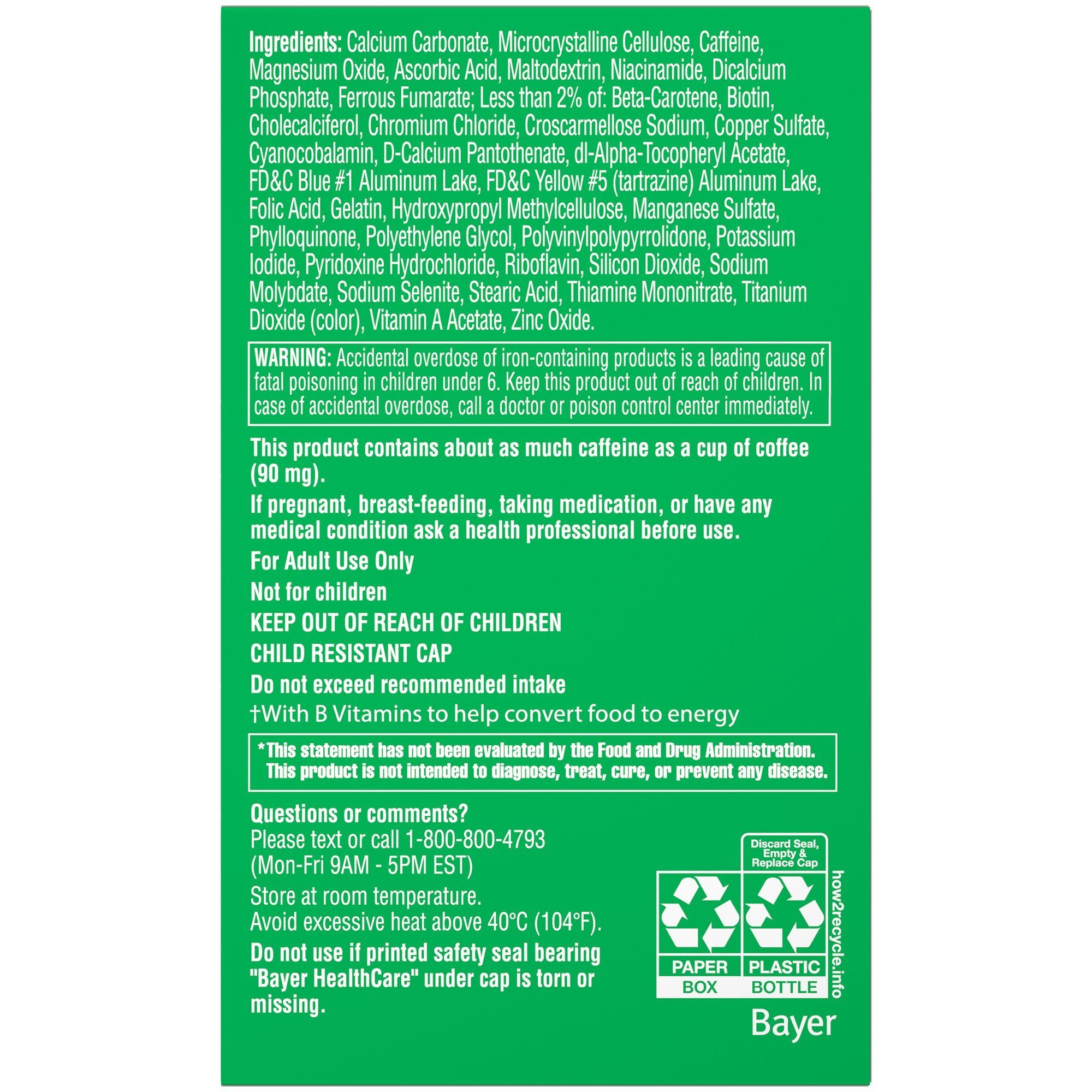 One A Day Energy Multivitamin; multivitamins for men and women; is designed with B-Vitamins which help convert food to energy; and caffeine to help support mental alertness