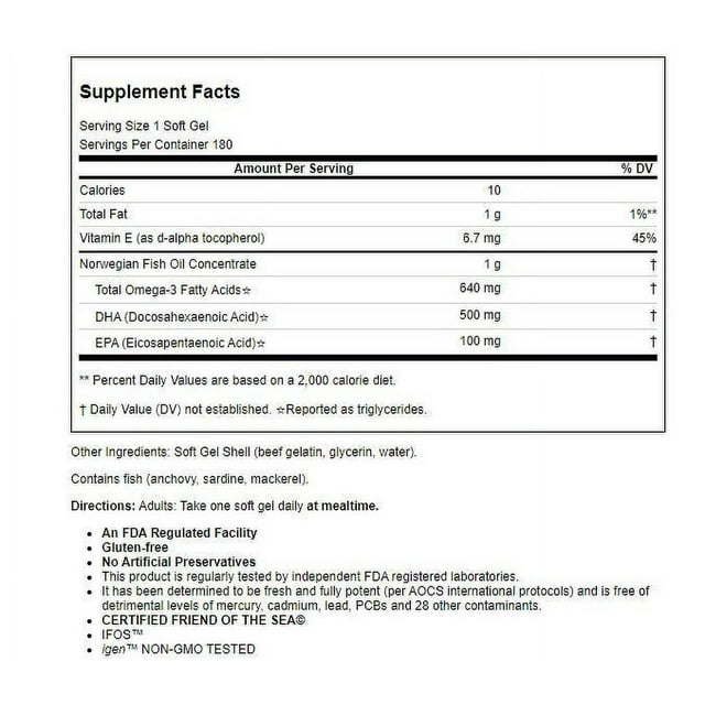 Before birth and during infancy, DHA plays an essential role in the healthy development of the entire nervous system, including the brain and retinas. DHA is provided to us in the womb and later from breast milk. As we develop and mature, we get DHA from our diet or a supplement, and it continues to play a critical role in brain and vision health. DHA is prevalent in the retina, and the cells that make vision possible have more DHA than any other cells in our body. Provide optimal support for cognitive function and vision with Carlson Super DHA Gems. Like all Carlson omega-3s, freshness, potency, and purity are guaranteed.