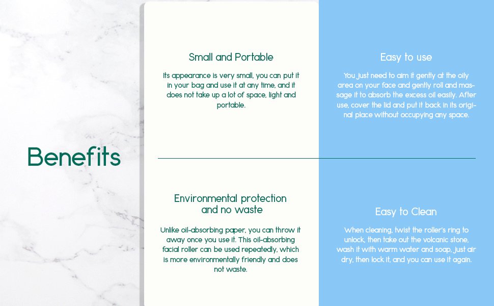 - Environmental protection and no waste. Unlike oil-absorbing paper; you can throw it away once you use it. This oil-absorbing facial roller can be used repeatedly; which is more environmentally friendly and does not waste.