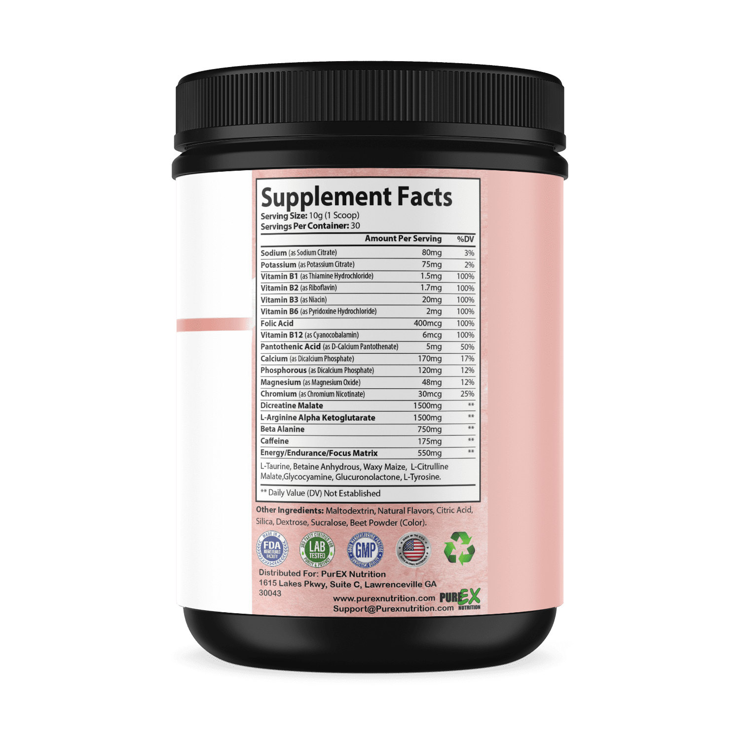 Finally, we added some important B vitamins to facilitate long term energy. We call this ‘real’ energy. These are the main nutrients that facilitate the body producing ATP. ATP is short for Adenisine Tri-Phosphate, but to keep things simple ATP is the actual usable form of energy in the body. It requires B vitamins for the body to make this process happen. So after the beta-alanine and caffeine kick in, you’ll be ripping apart calories making real energy as well!