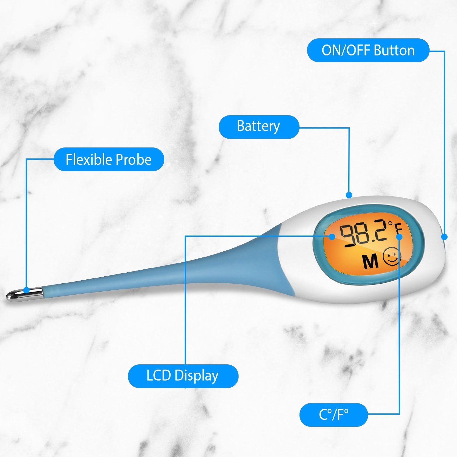 **[Fast & Accurate Reading]- The digital thermometer medical has an optimized algorithm that can noticed with a "bi bi"sound when measurement is finished and also the accurate to ±0.1℃(0.2℉) for precision and reliability. It will take up to 30 seconds -1 minute to get the measurement result.